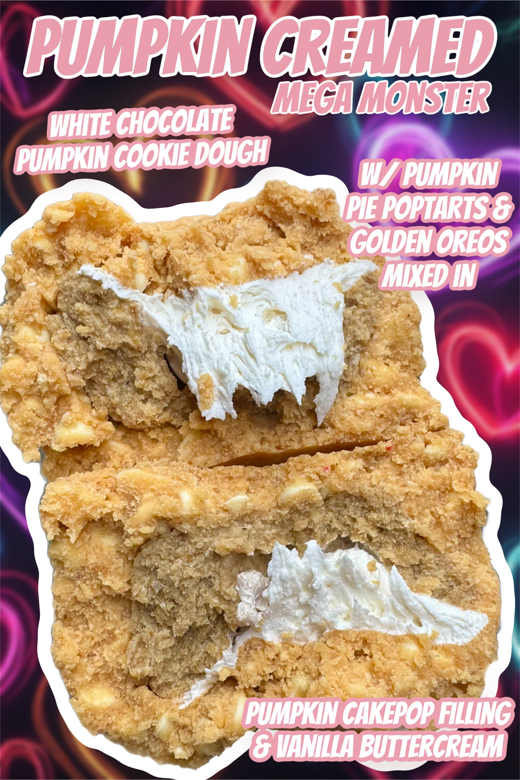Cookie Monsters... Meet OUR MEGA MONSTER SIZE COOKIE! As if our treats weren't overwhelming enough! Each mega sized cookie weighs a MINIMUM of 20+ oz. That's over a pound!! A step above our Mini Monster😉 There's a very limited amount and flavors are most likely only available once. So whether its your birthday, show day, or just a random Tuesday if you see a flavor get it now and freeze it for later!🍪🍪
